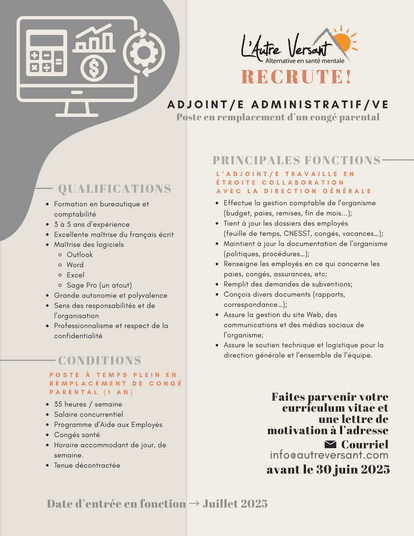 100% of the money raised will be donated to Oasis Santé Mentale, L’Autre Versant, l’Éveil and the Haute-Yamaska Suicide Prevention Center. Organizations that cover the Haute Yamaska and Brome Missisquoi region.